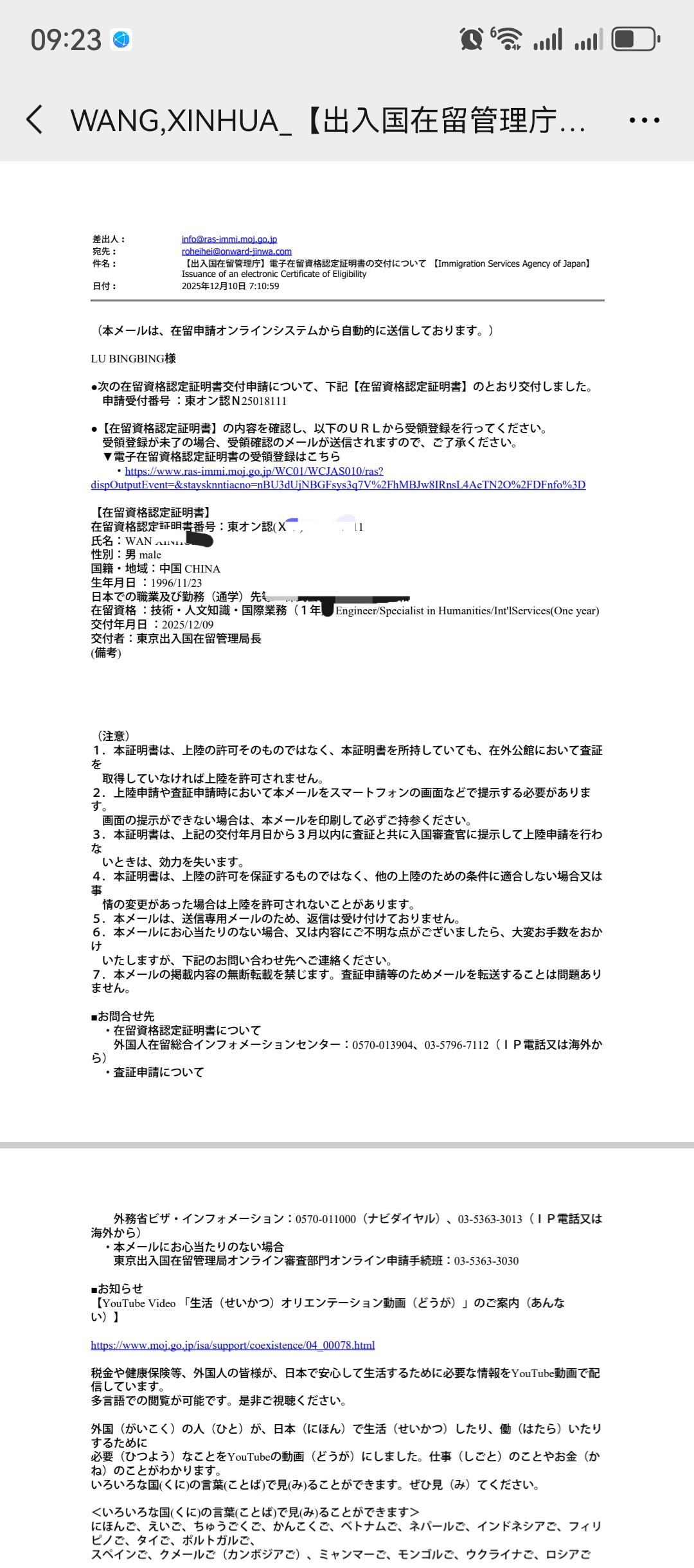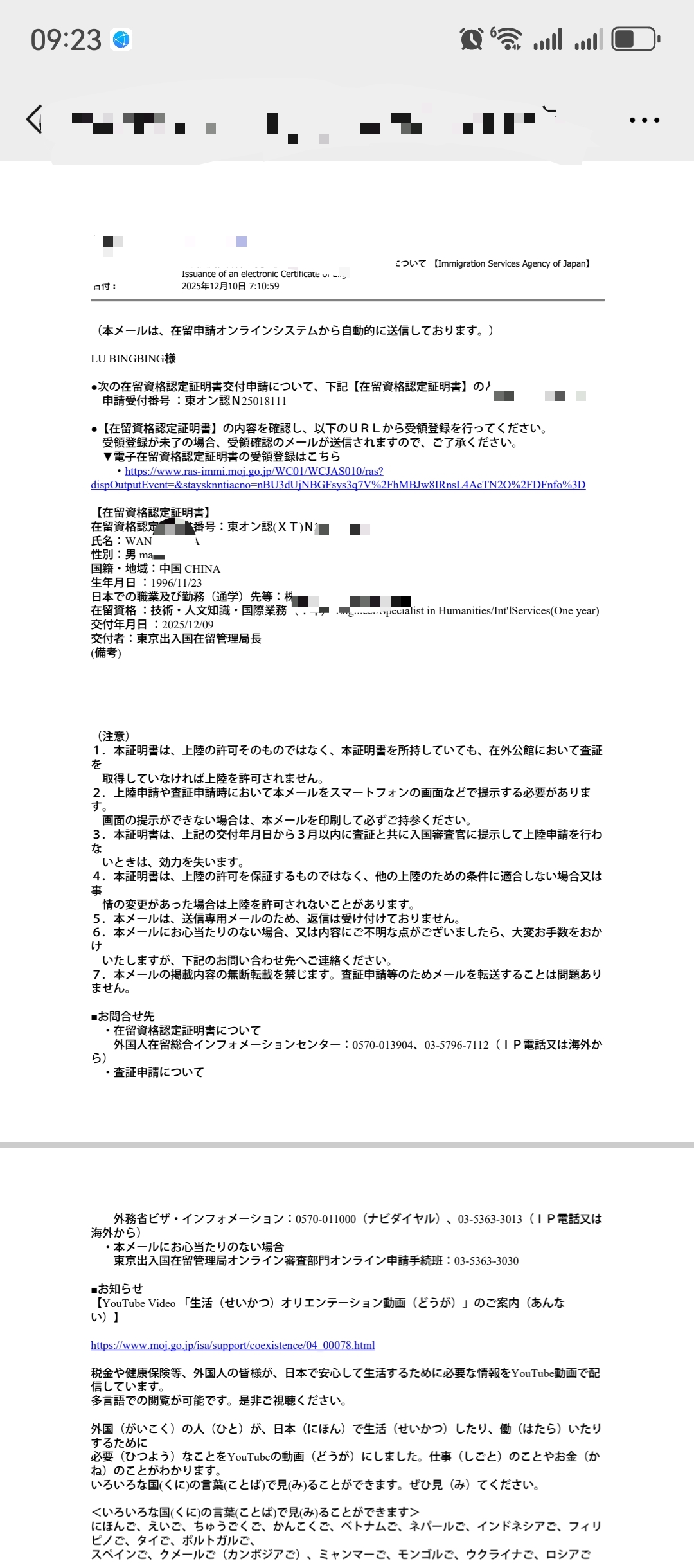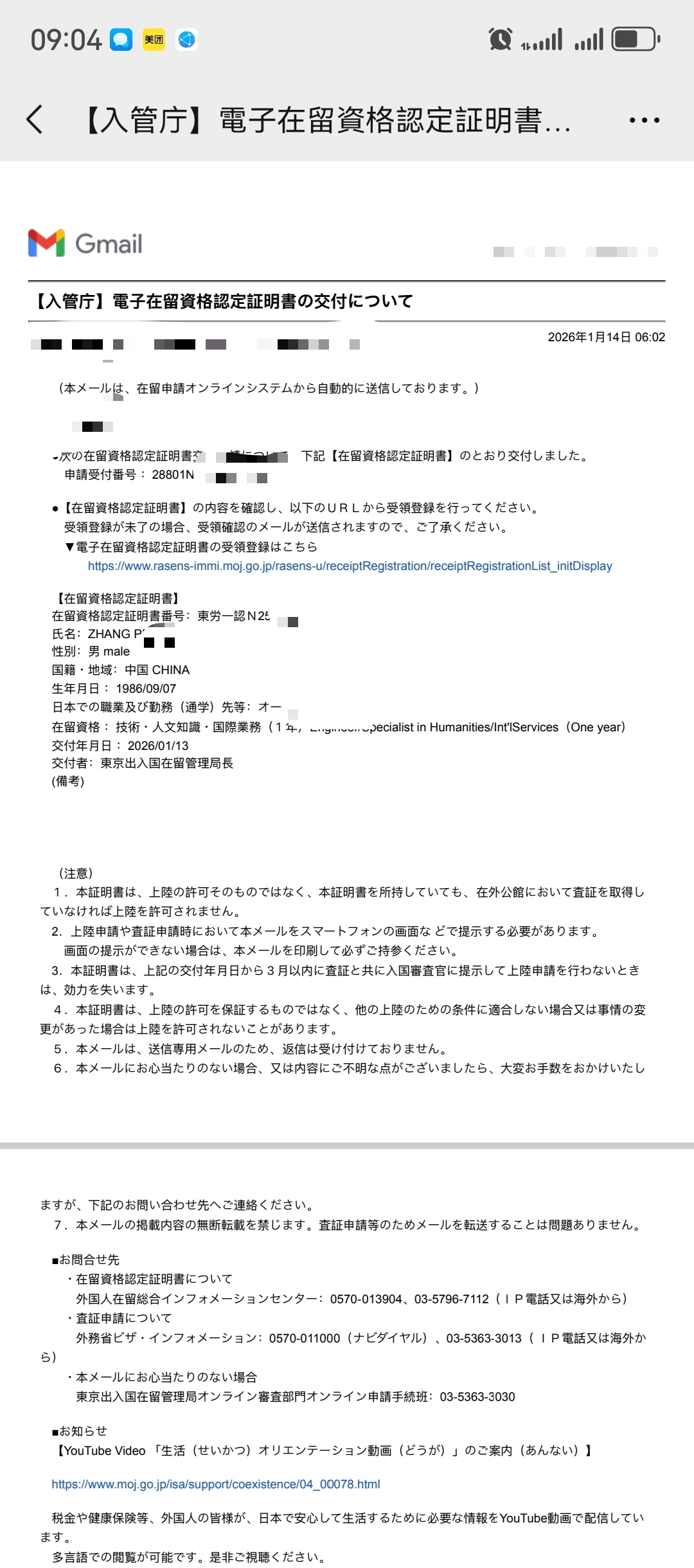 电子在留卡下发分享