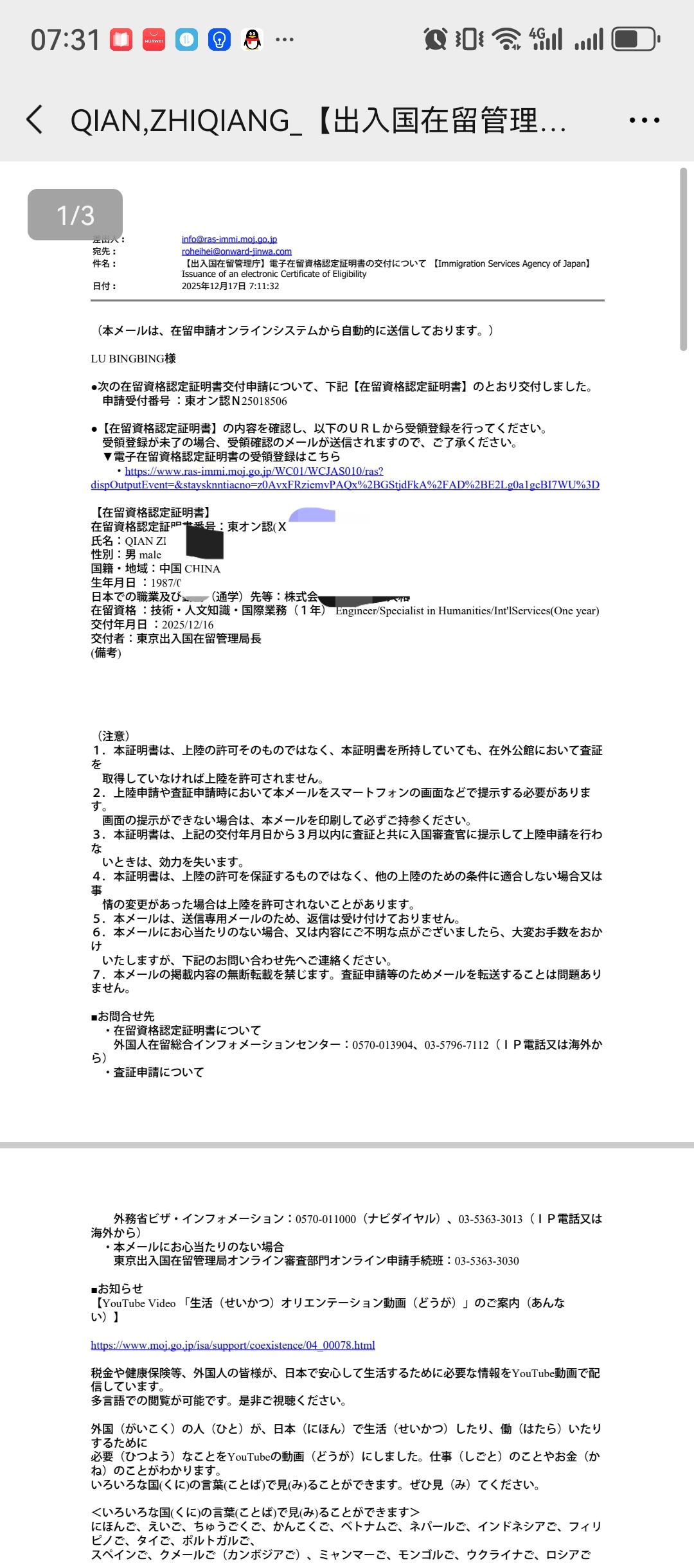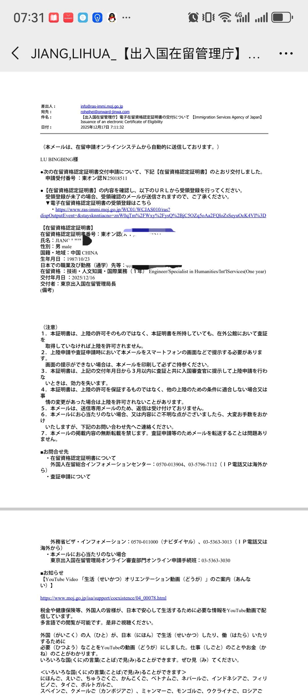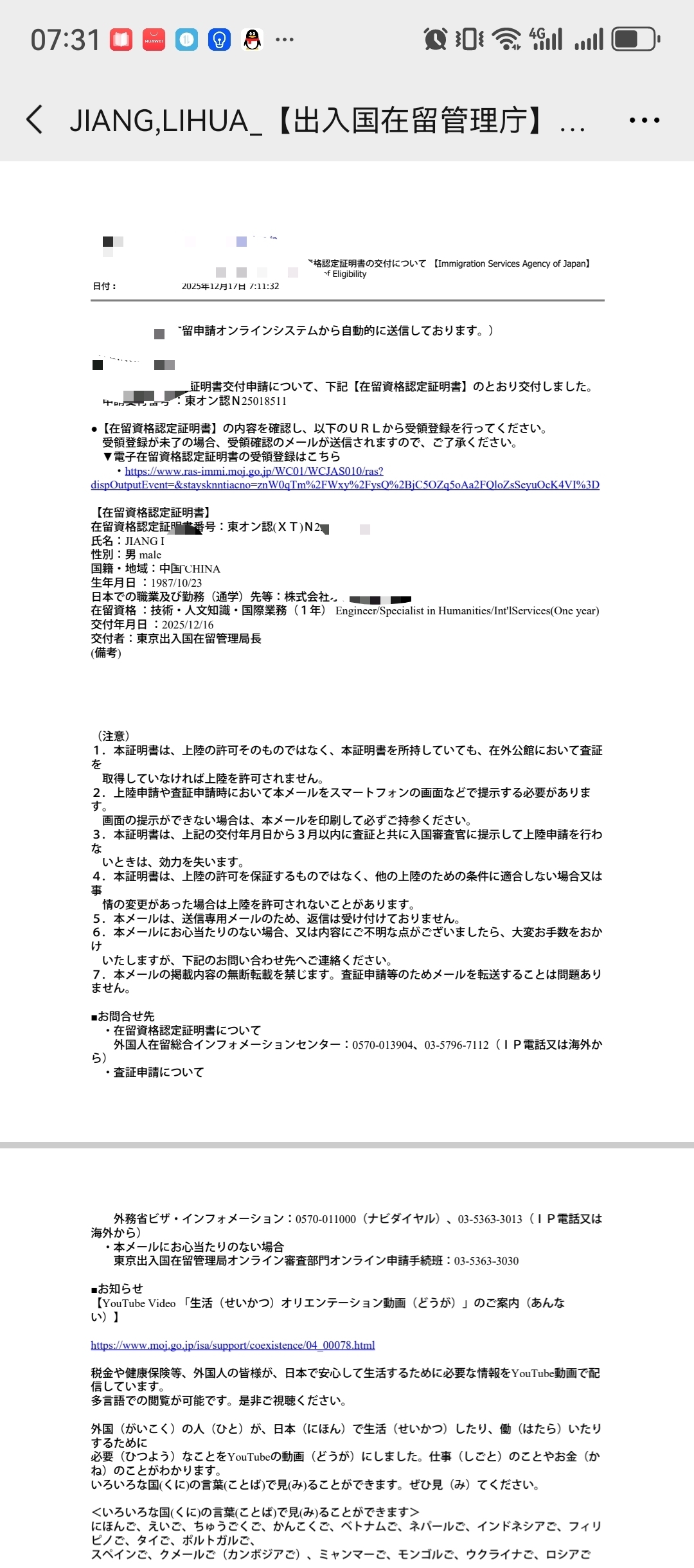 > 电子在留卡下发分享